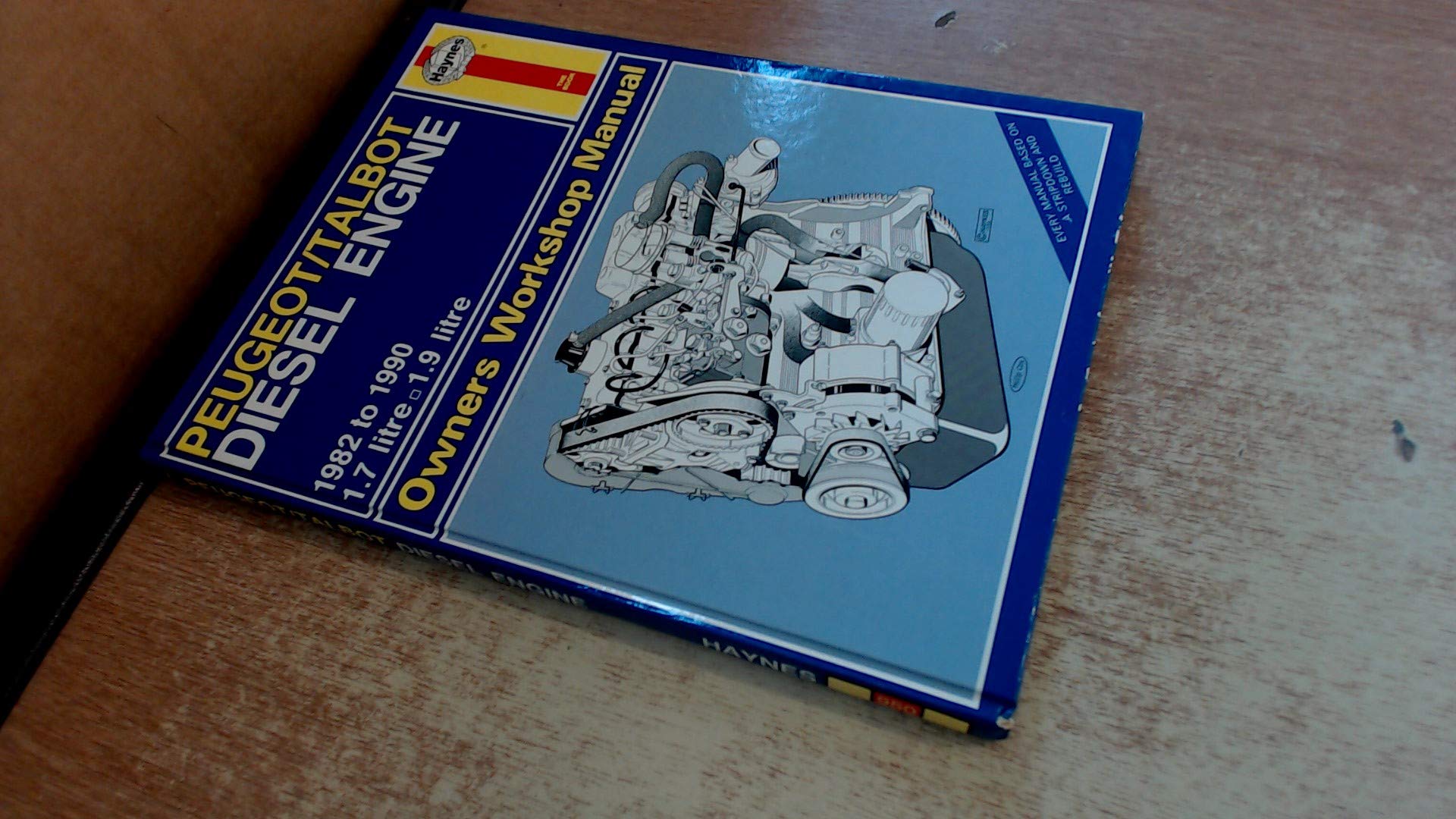Image: Front cover of the Haynes Owner's Workshop Manual for Peugeot and Talbot 1.7 and 1.9 Litre Diesel Engines (1982-1990). The cover features the Haynes logo, vehicle models, engine sizes, and a detailed technical illustration of a diesel engine.