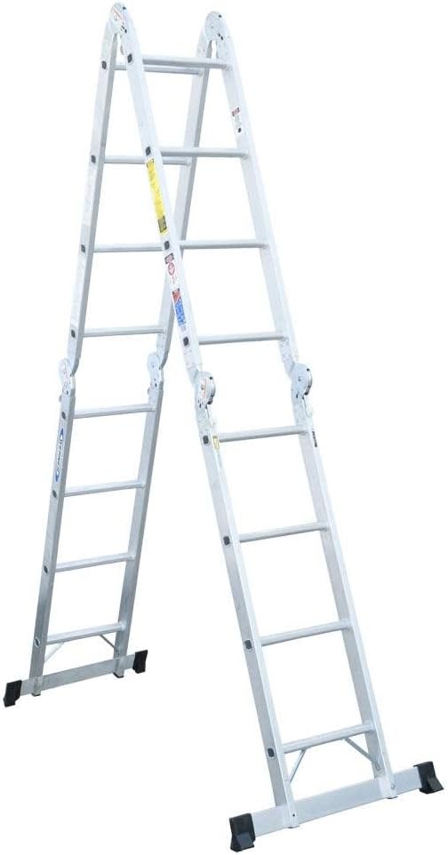 The Werner M1A-8-16B is a versatile 16-foot aluminum articulated multi-ladder designed for various applications. It features a Type IA duty rating, supporting a maximum load capacity of 300 pounds. This ladder can be configured into multiple positions, including A-frame, extension, and scaffold base, providing flexibility for different tasks.