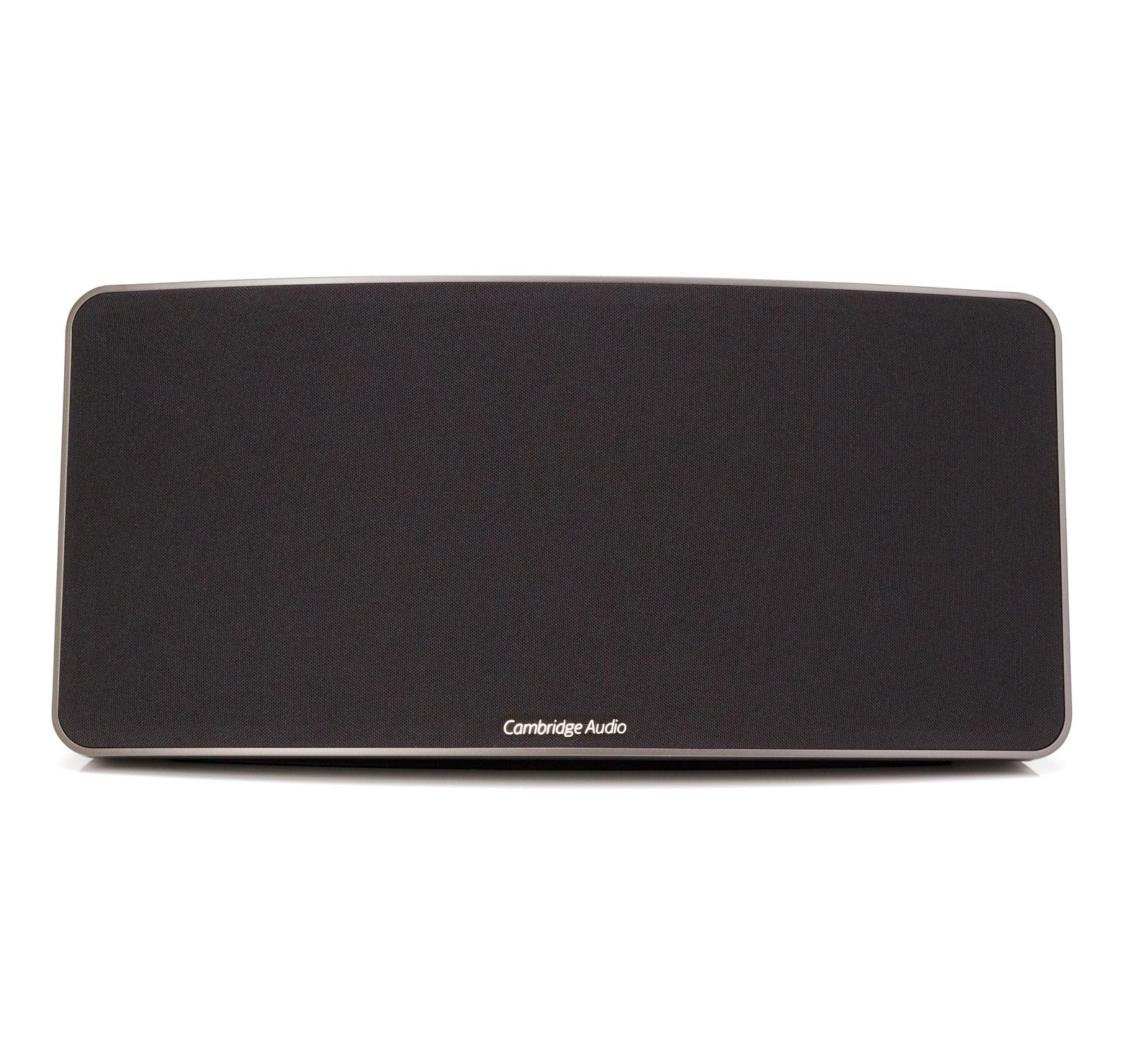 ഒരു മുന്നണി view of the Cambridge Audio Minx Air 200 V2 Wireless Music System, featuring a black speaker grille and a sleek, rectangular design with rounded corners. The Cambridge Audio logo is visible at the bottom center of the grille.