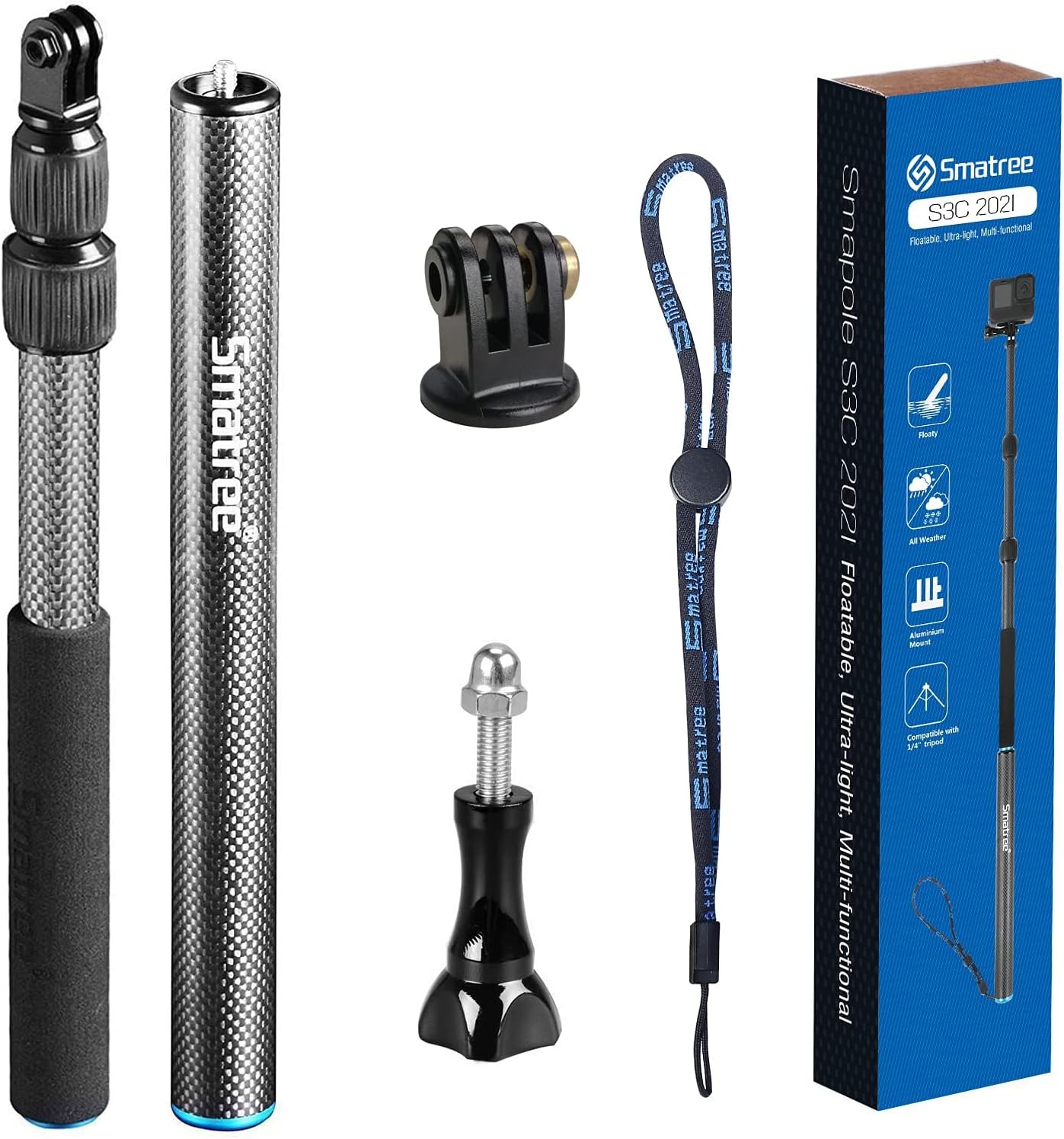 This manual provides detailed instructions for the assembly, operation, and maintenance of your Smatree S3C Carbon Fiber Detachable Extendable Floating Pole. Designed for action cameras, this versatile accessory enhances your ability to capture footage both on land and in water. Please read this manual thoroughly before use to ensure proper handling and longevity of the product.