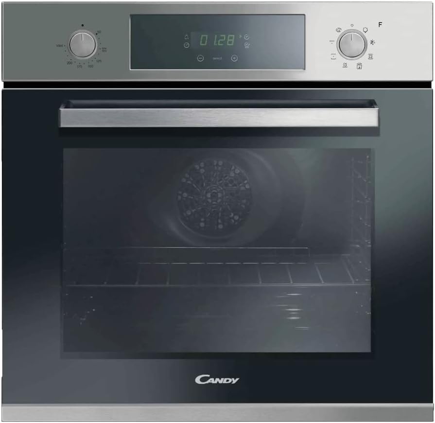 ചിത്രം: മുൻഭാഗം view of the Candy Pop Evo FCP625XL/E Multifunction Oven, showcasing its stainless steel finish, black glass door, and digital control panel.