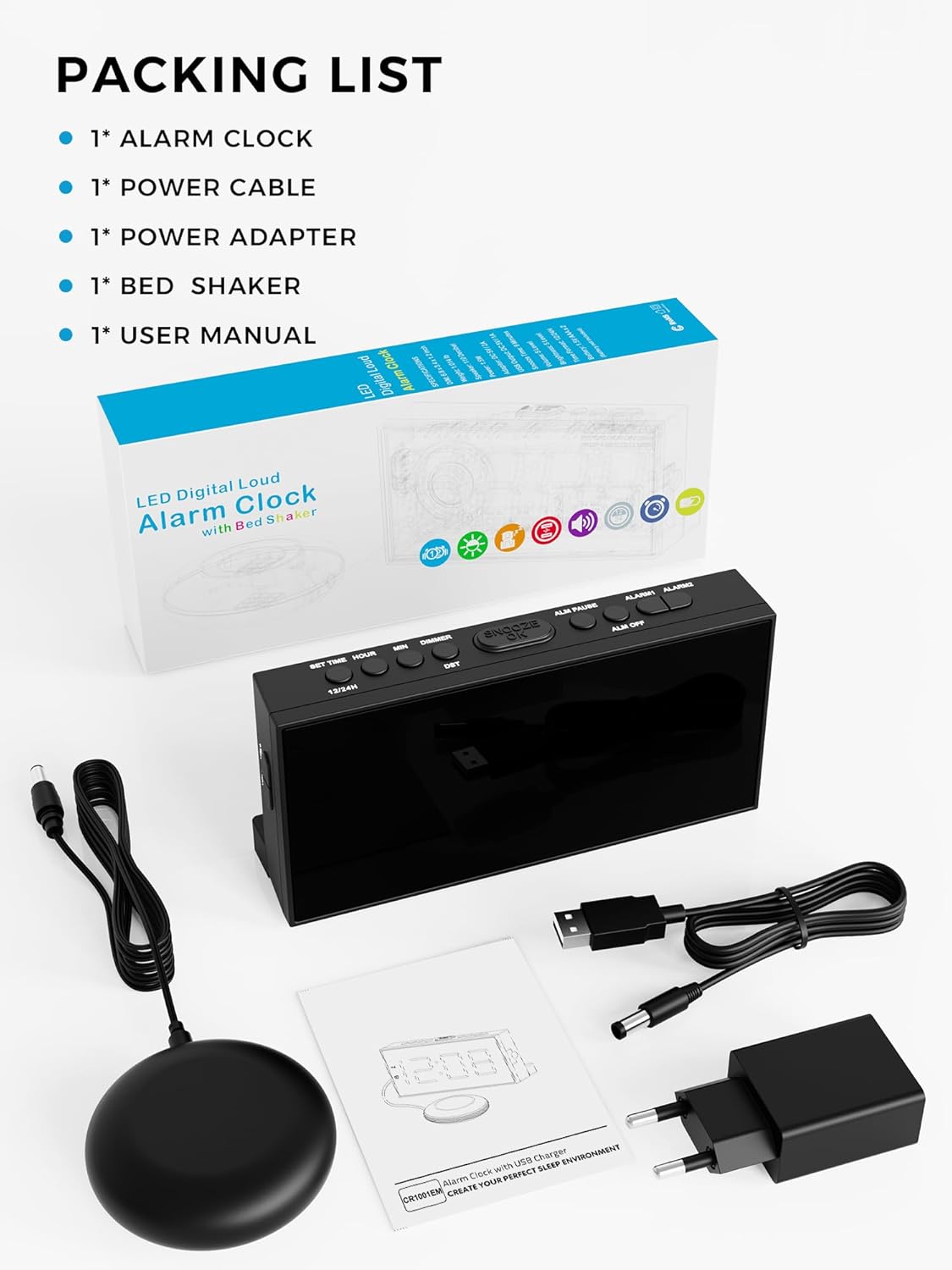 Thank you for choosing the Mesqool CR1001em Alarm Clock with Bed Shaker. This device is designed to provide a reliable and effective wake-up experience, especially for heavy sleepers, the deaf, or hard-of-hearing individuals. Please read this manual carefully to ensure proper setup and operation of your alarm clock.