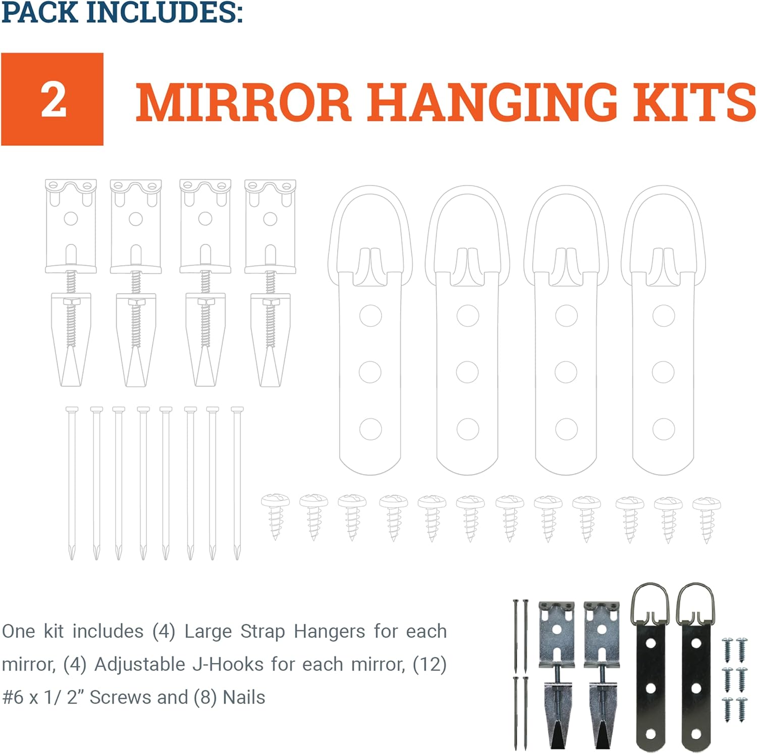 - Complete Hanging Solution: Includes large strap hangers and adjustable leveling hardware for various mirror types.