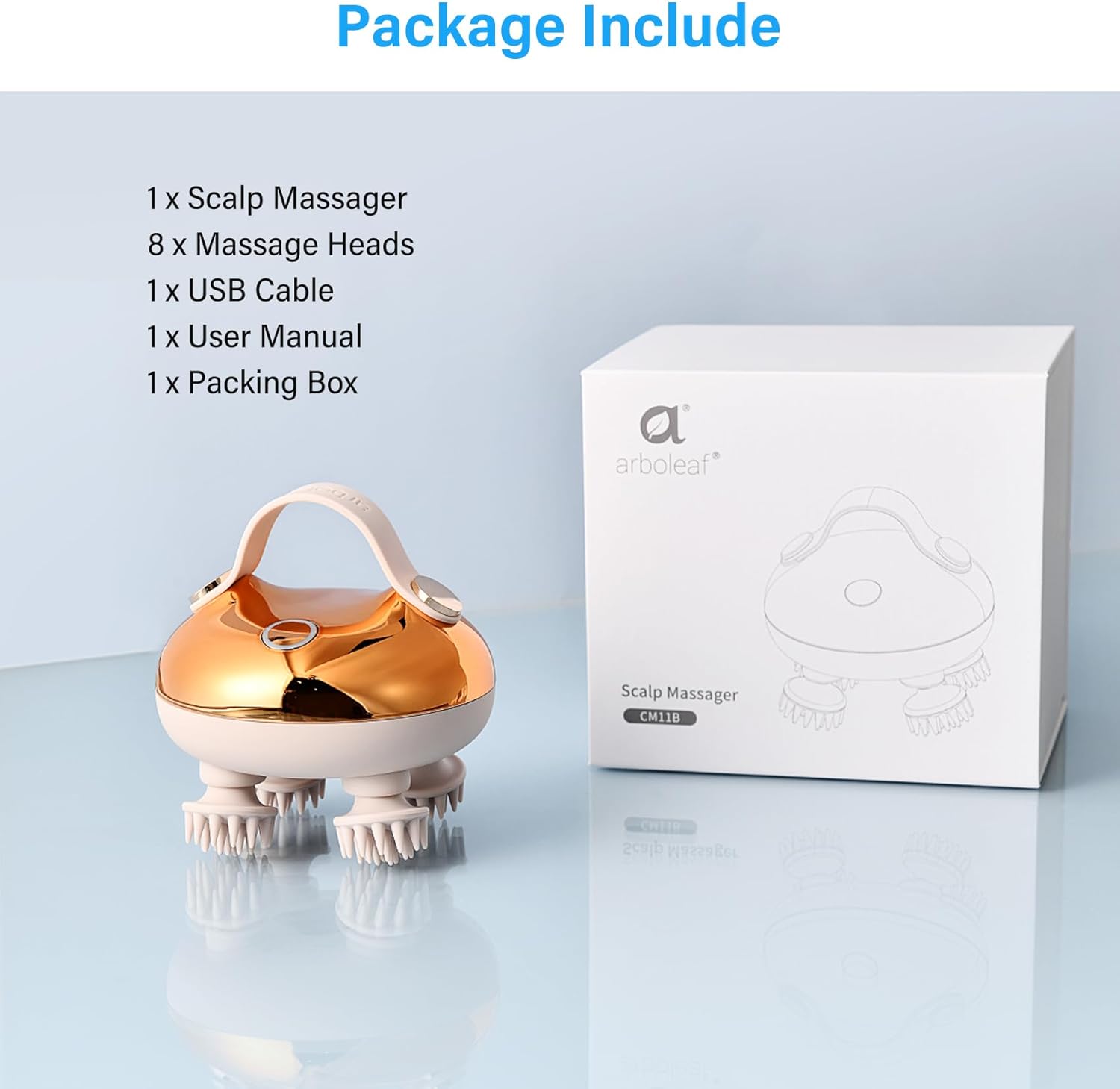 Image: The arboleaf Scalp Massager CM11B and its complete package contents.