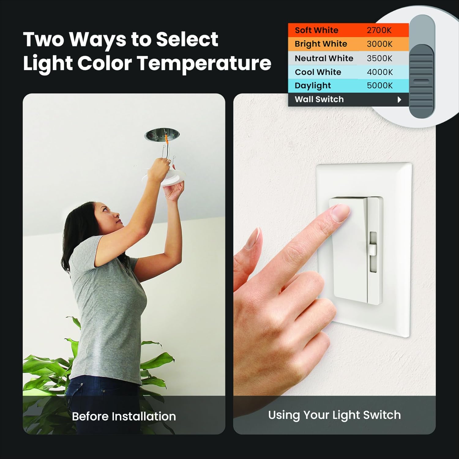 Your Feit Electric downlight offers five color temperature options to suit your preference and environment. You can select the desired color temperature in two ways: