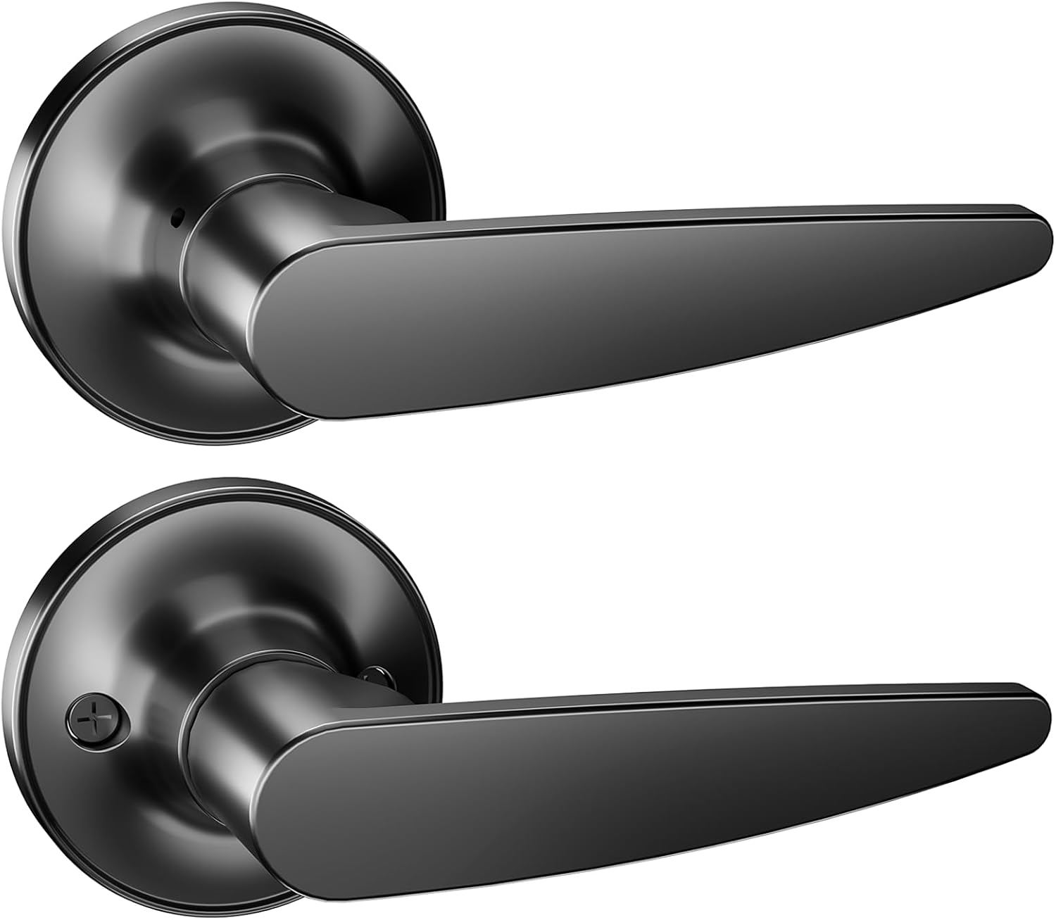 Image: The Ulecoce Front Door Lock Set, featuring two sleek black door handles.