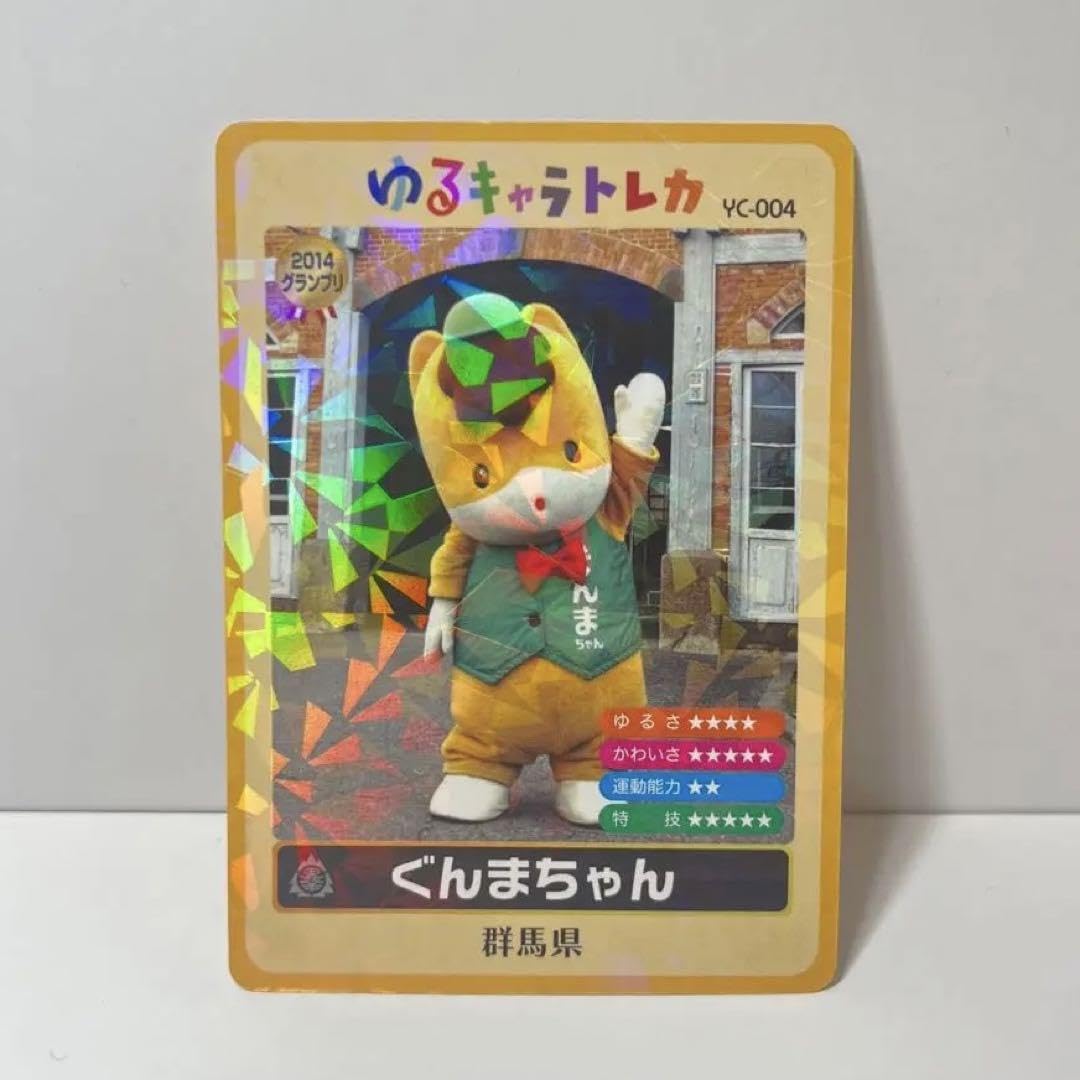 യുറു-ചാര ട്രേഡിംഗ് കാർഡ് YC-004, ഗൺമ പ്രിഫെക്ചറിന്റെ ഭാഗ്യചിഹ്നമായ ഗൺമ-ചാൻ പ്രദർശിപ്പിക്കുന്നു. കാർഡിന്റെ പ്രധാന വിശദാംശങ്ങളും സവിശേഷതകളും ഇപ്രകാരമാണ്: