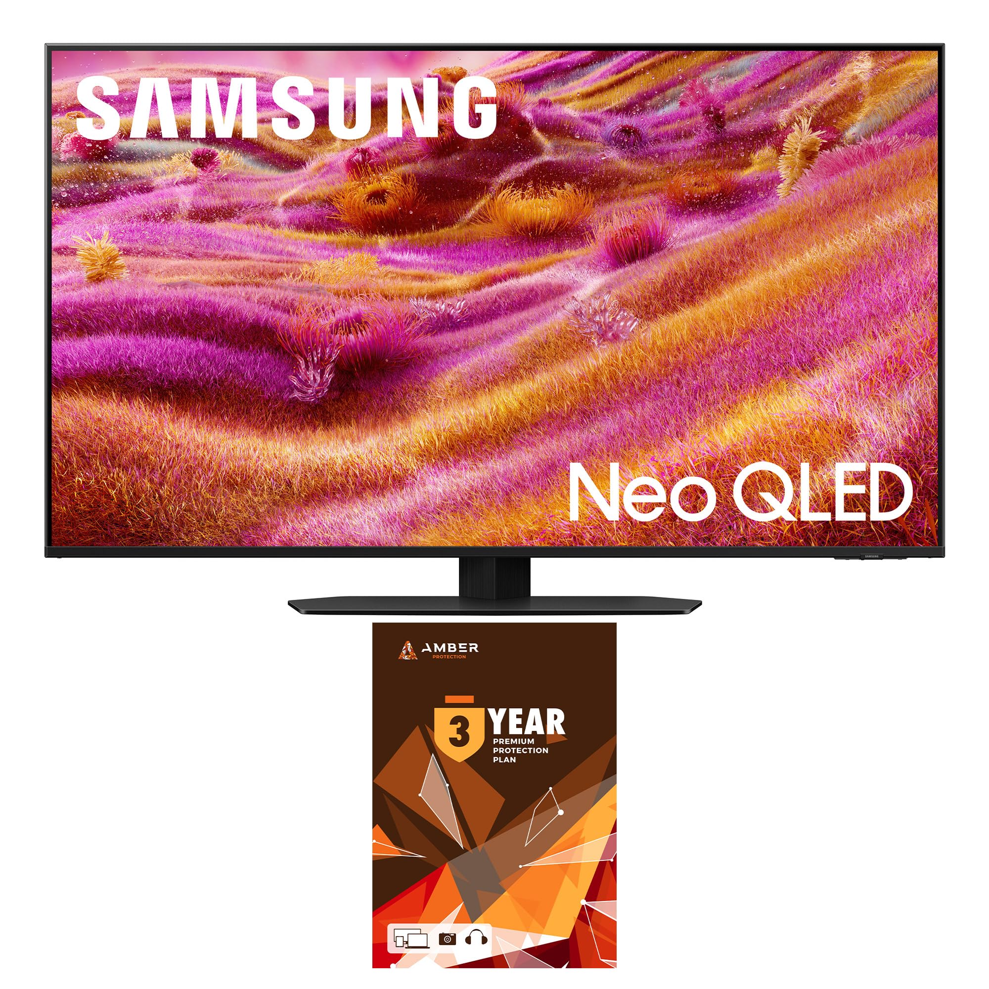 Your Samsung QN43QN90FA TV comes with a full 1-year manufacturer's warranty. Additionally, this specific bundle includes a 3-Year Amber Protection Plan. For warranty claims or technical assistance, please refer to the contact information provided in your warranty documentation or visit the official Samsung support webസൈറ്റ്.