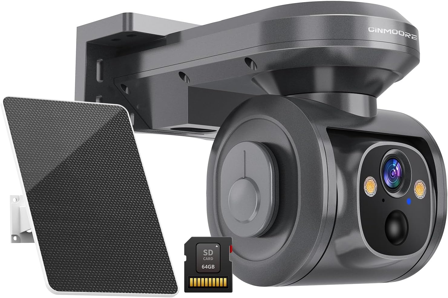 Figure 1: CINMOORE 2.5K 4MP 4G LTE Cellular Security Camera with included solar panel and 64GB SD card.