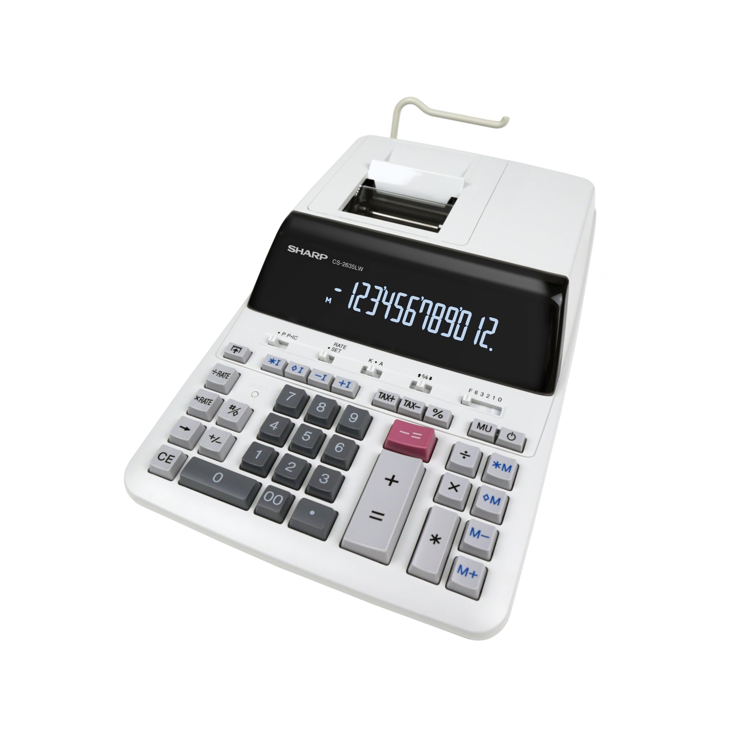 ഫ്രണ്ട് view of the Sharp CS-2635LW Printing Calculator, showing the display, keypad, and paper roll mechanism.